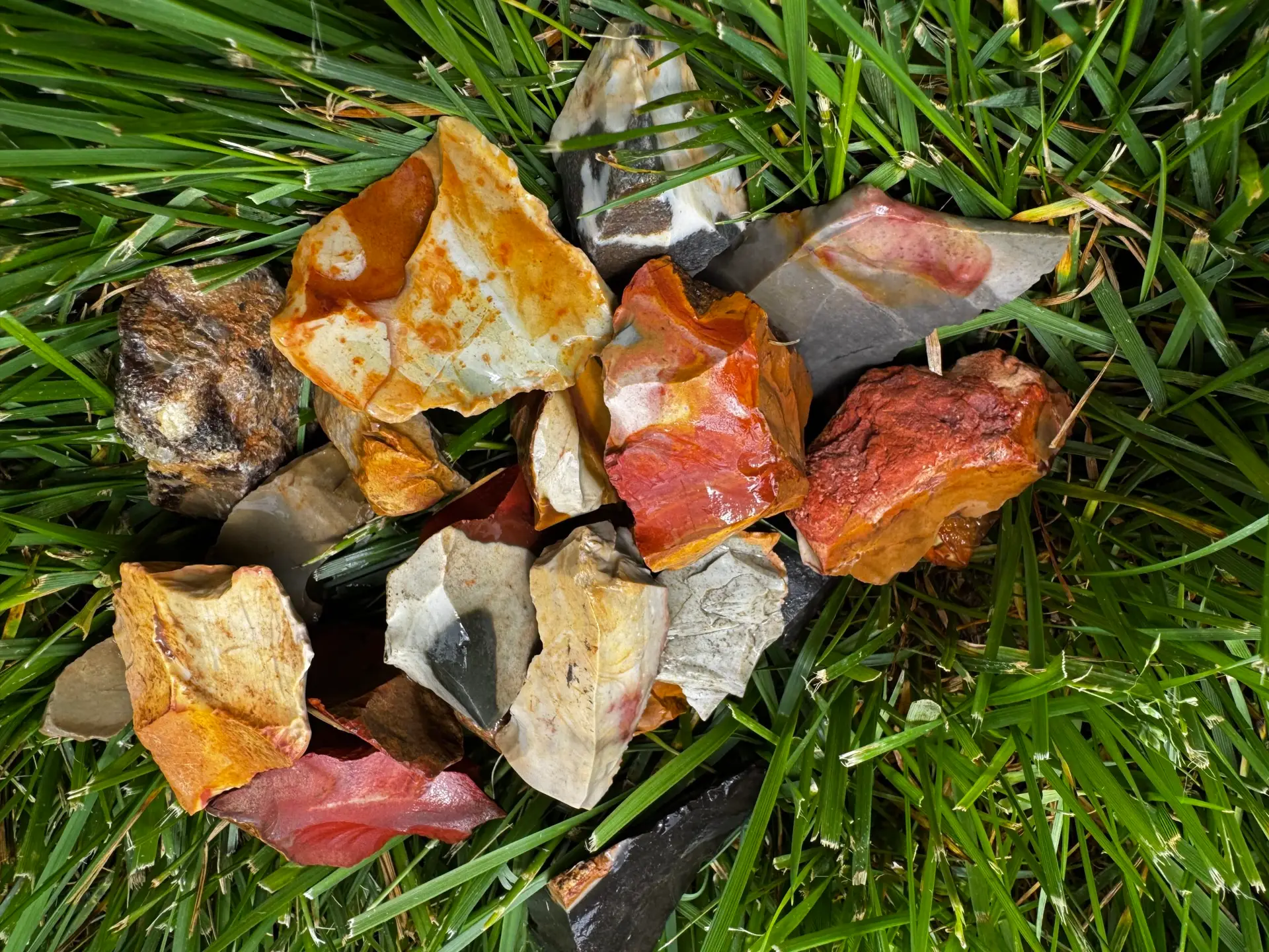 Uncover the ancient fire of the Earth with these raw, unpolished Polychrome Jasper pieces—shown wet to reveal the rich detail and kaleidoscope of color hidden in every stone. From deep sienna reds and smoky grays to golden ochres and windswept creams, each piece is completely unique—just like your journey.